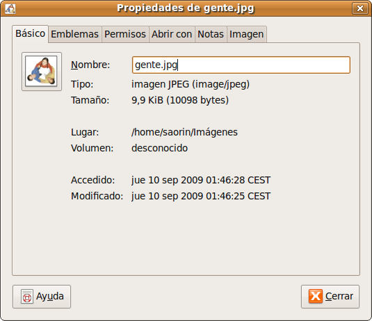 Dependiendo del tipo de archivo podemos encontrar otras dos pestañas Imagen o Documento que nos darán información sobre el tipo, tamaño, fecha de creación, autor, etc.